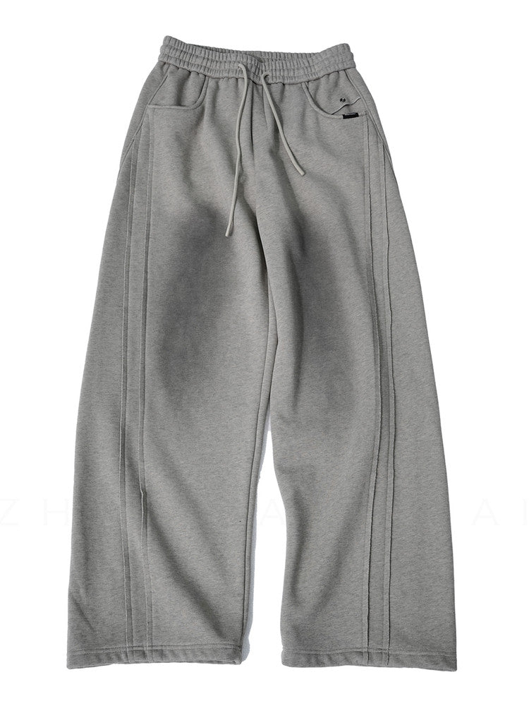 Fleece-Lined Distressed Knit Sweatpants With A Straight Leg In Winter Style