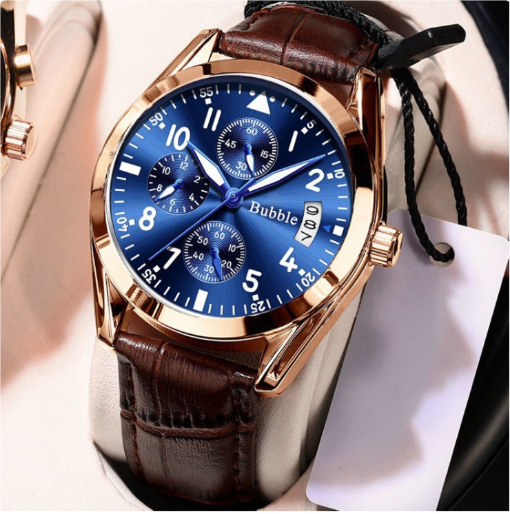 Color: Digital six-hand gold case with brown strap (blue), digital six-hand gold case with brown strap (brown), digital six-hand leather strap all black, digital six-hand silver case with black strap (black), digital six-hand silver case with black strap (blue)