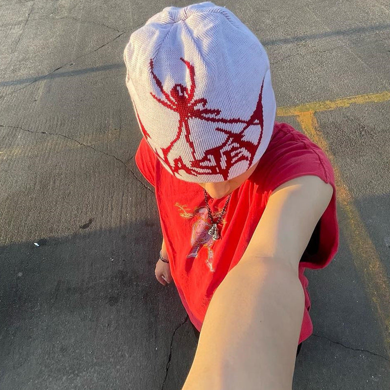 Knitted Hat Spider Embroidered Knitted Autumn Winter Hat Y2g Street Warm