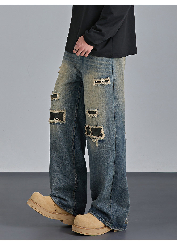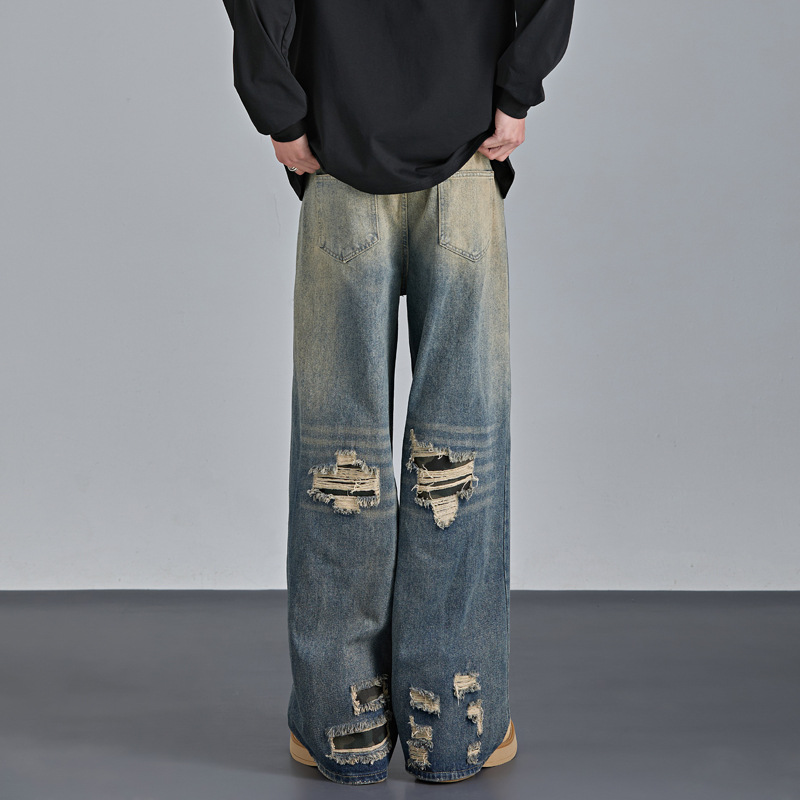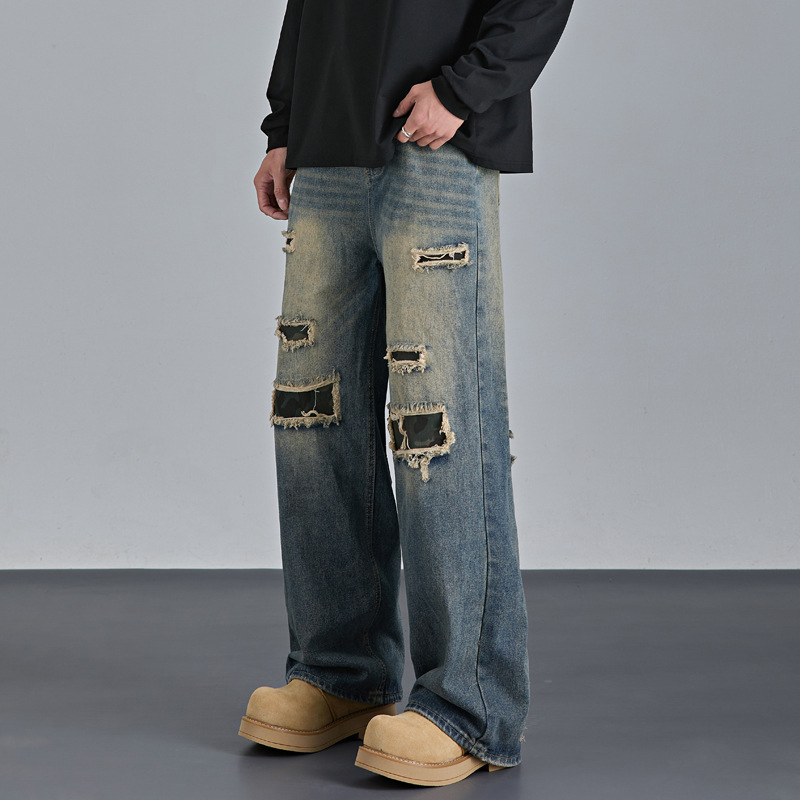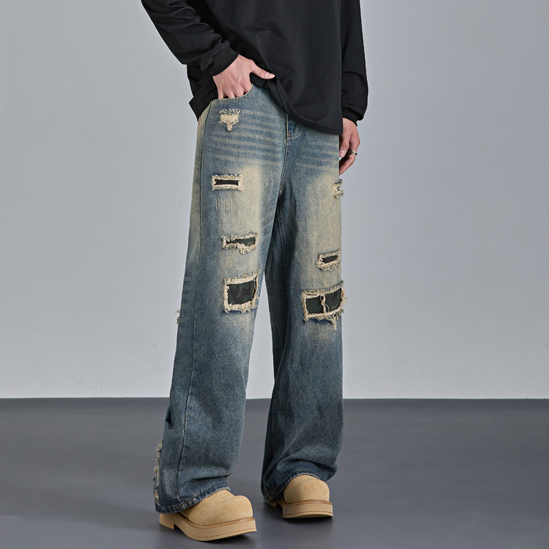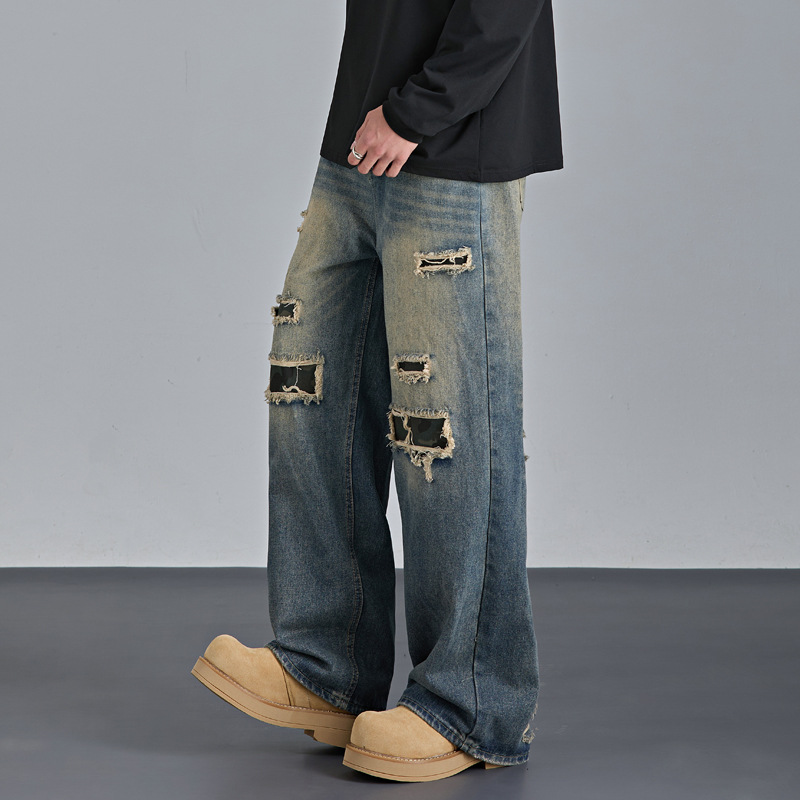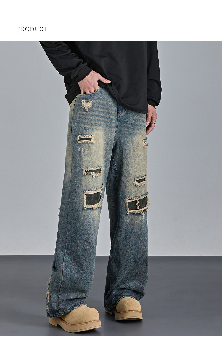 Mens American-style Streetwear Camouflage Ripped Jeans