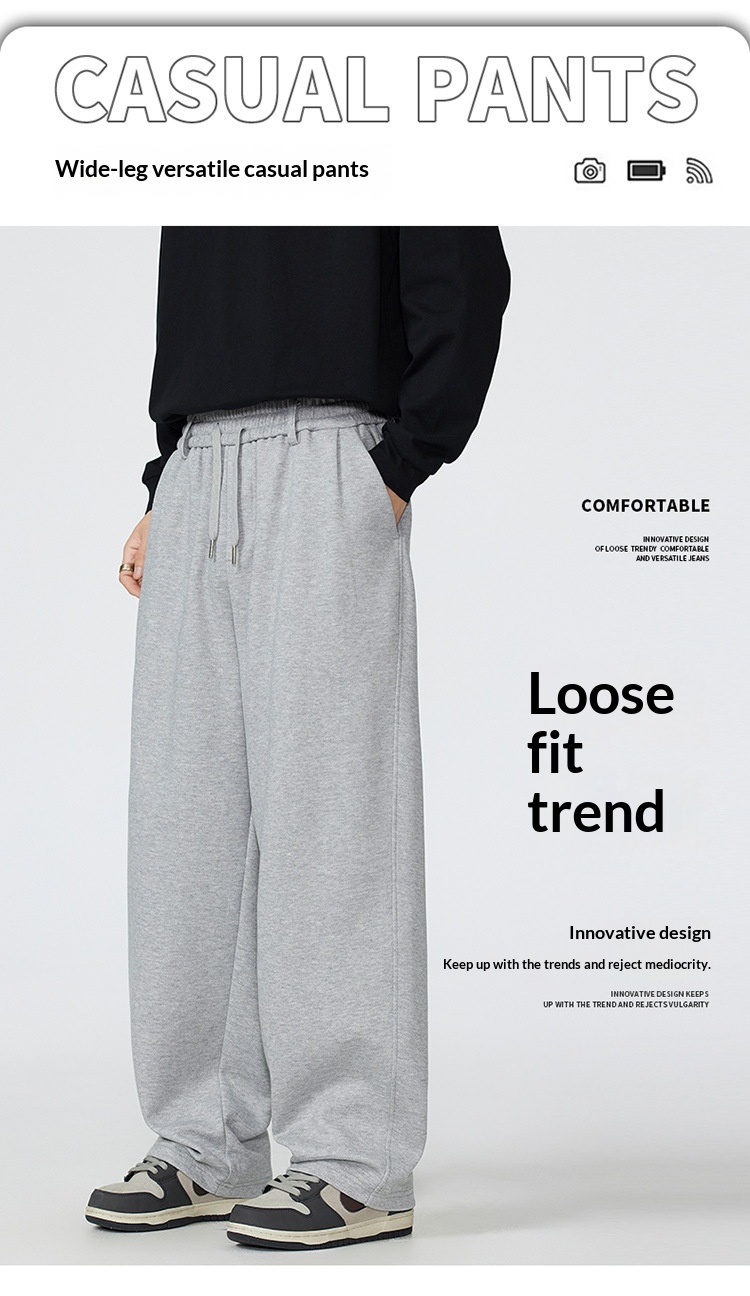 Mens Loose-Fit American-Style High-Street Drawstring Sweatpants