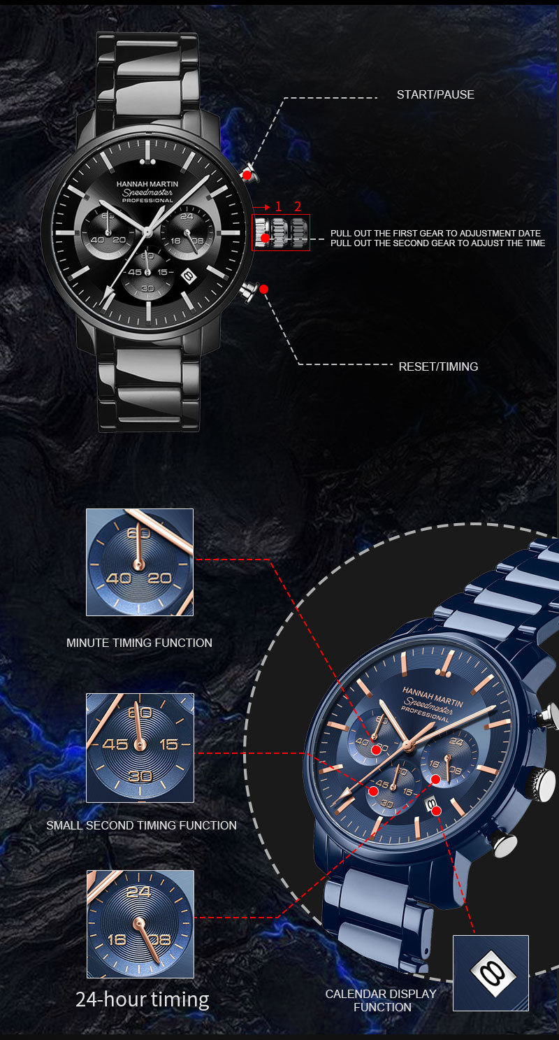 New Six-hand Multi-function Waterproof Calendar Watch For Business Men