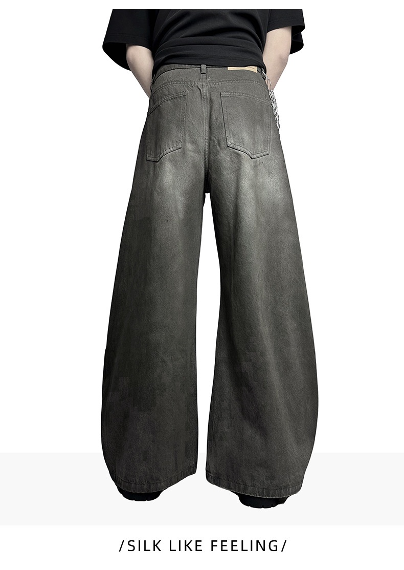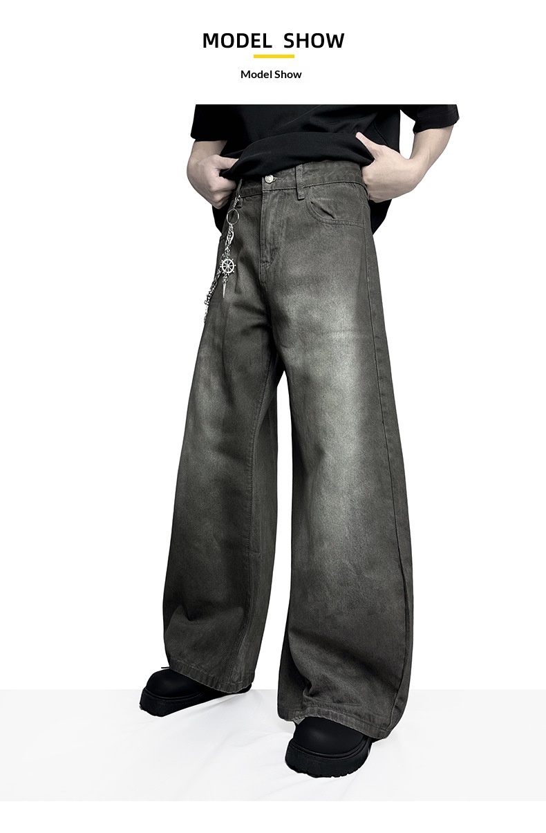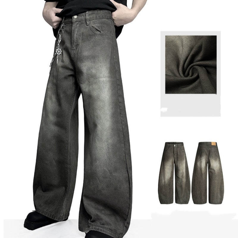 Retro Washed-Effect Cropped Wide-Leg Casual Pants For Men