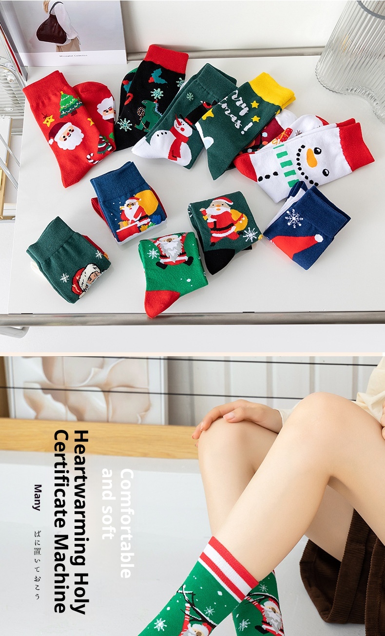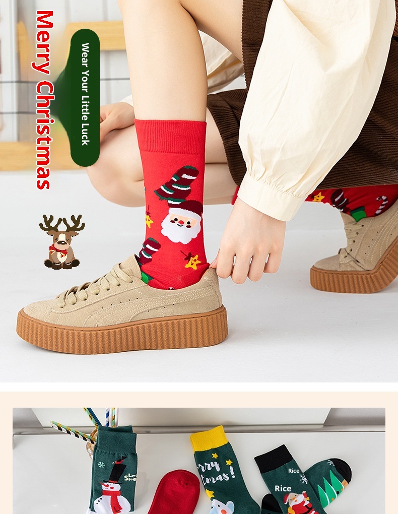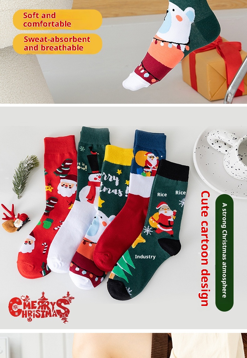 Santa Snowman Cartoon Cotton Socks
