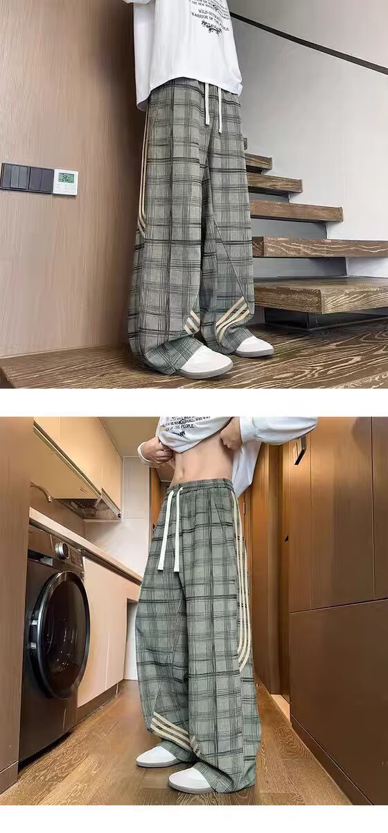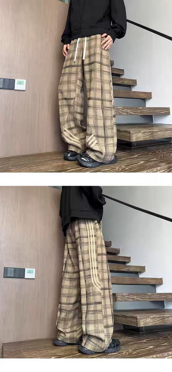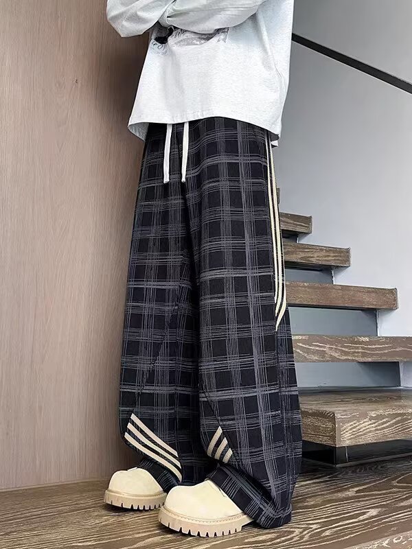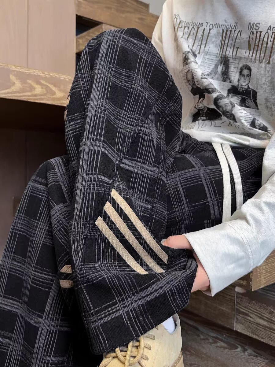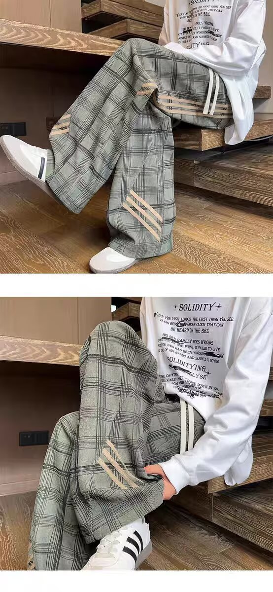 Striped And Plaid Patchwork Versatile Minimalist Straight-leg Wide-leg Sweatpants