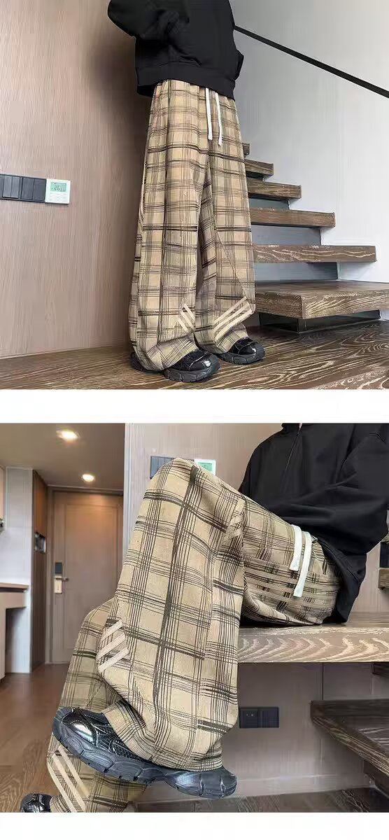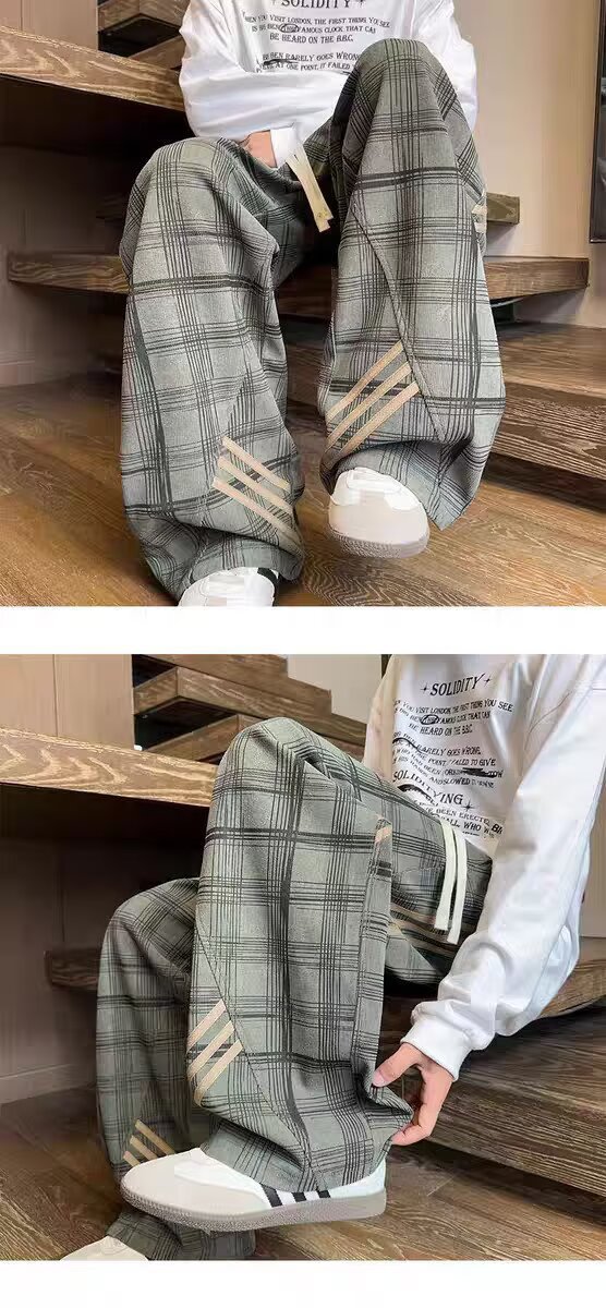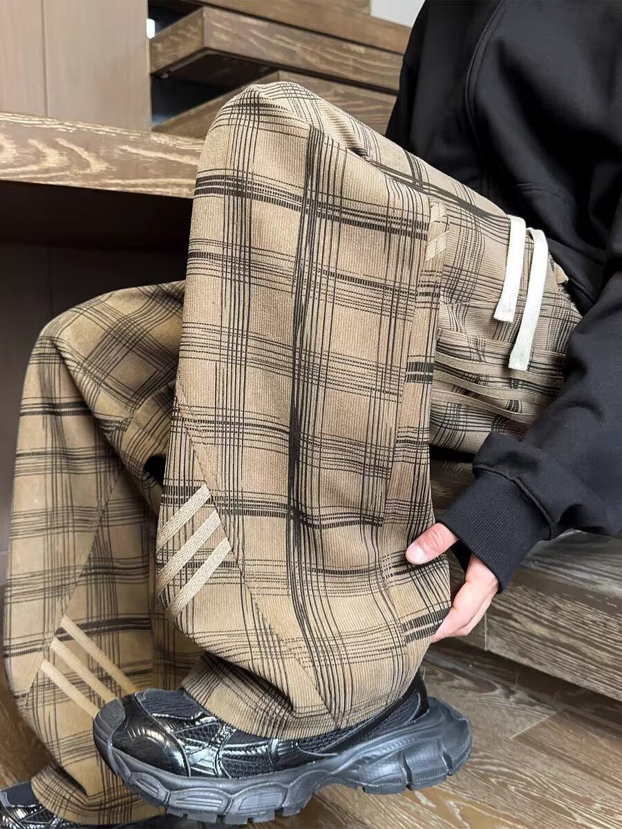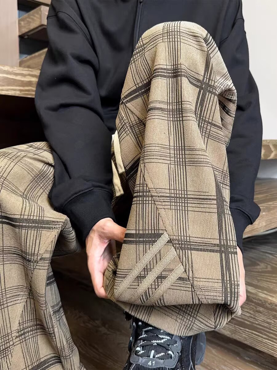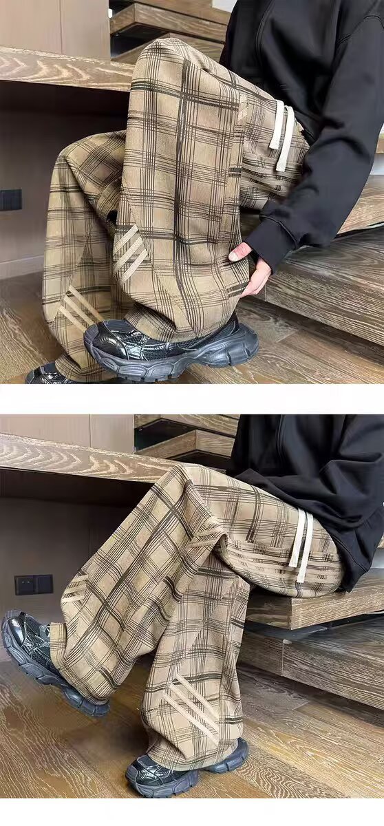 Striped And Plaid Patchwork Versatile Minimalist Straight-leg Wide-leg Sweatpants