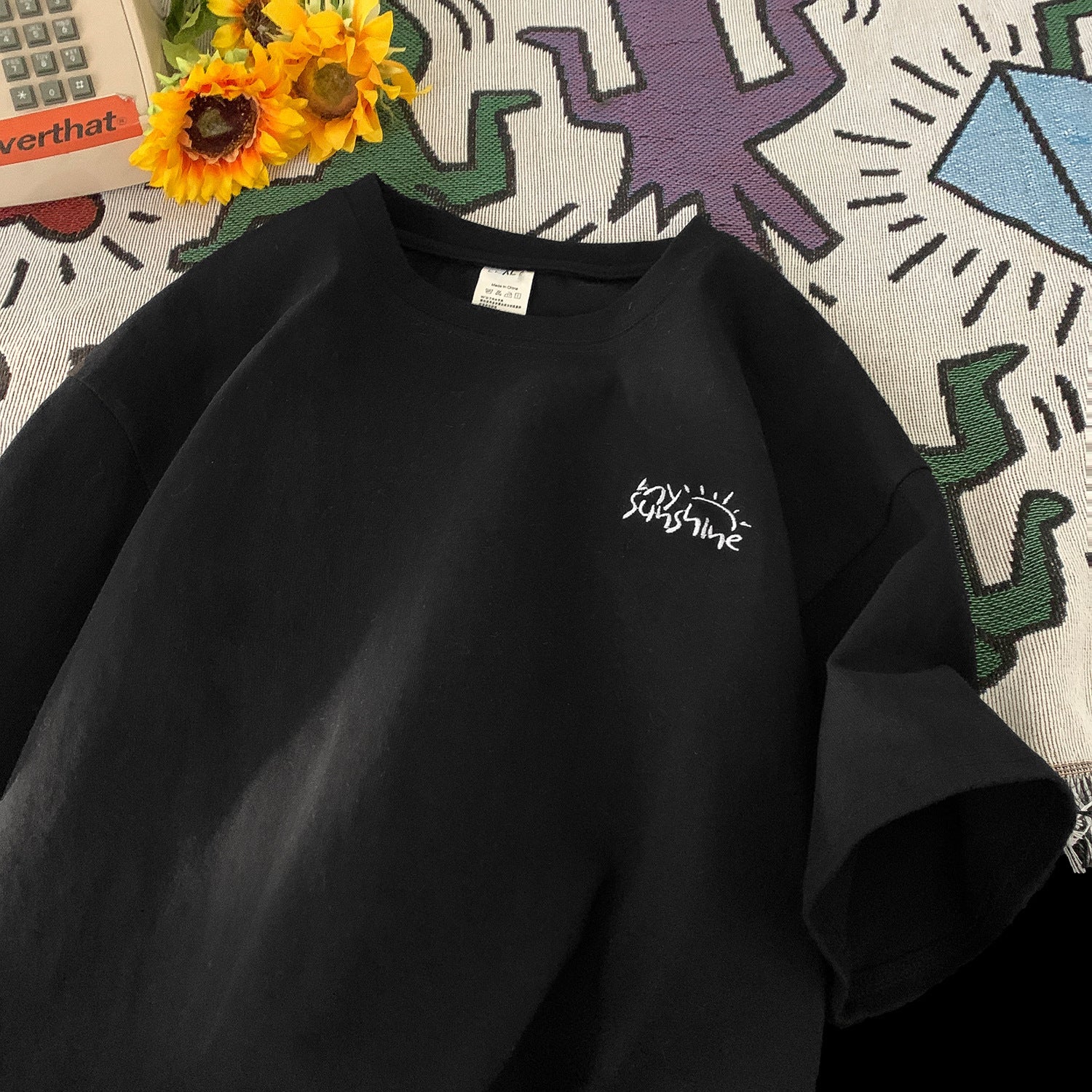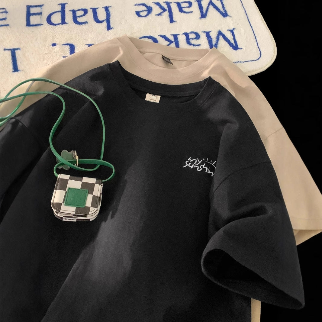Teenage Minimalist Trendy Loose-fitting Crew-neck Half-sleeve