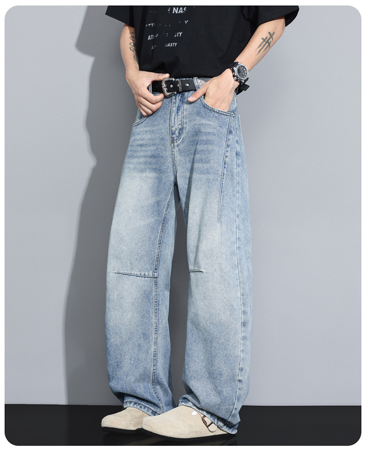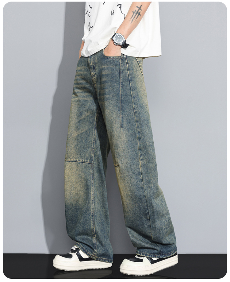 Versatile High-Street Mens Straight-Leg Denim Jeans